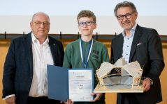 Paul Constantiniu hat mit seinem innovativen Stadiondachmodell „Arena Z“ den ersten Platz beim Landeswettbewerb von Junior.ING belegt und sich damit als erster Teilnehmer in der Geschichte des Wettbewerbs Siege in beiden Altersklassen gesichert.