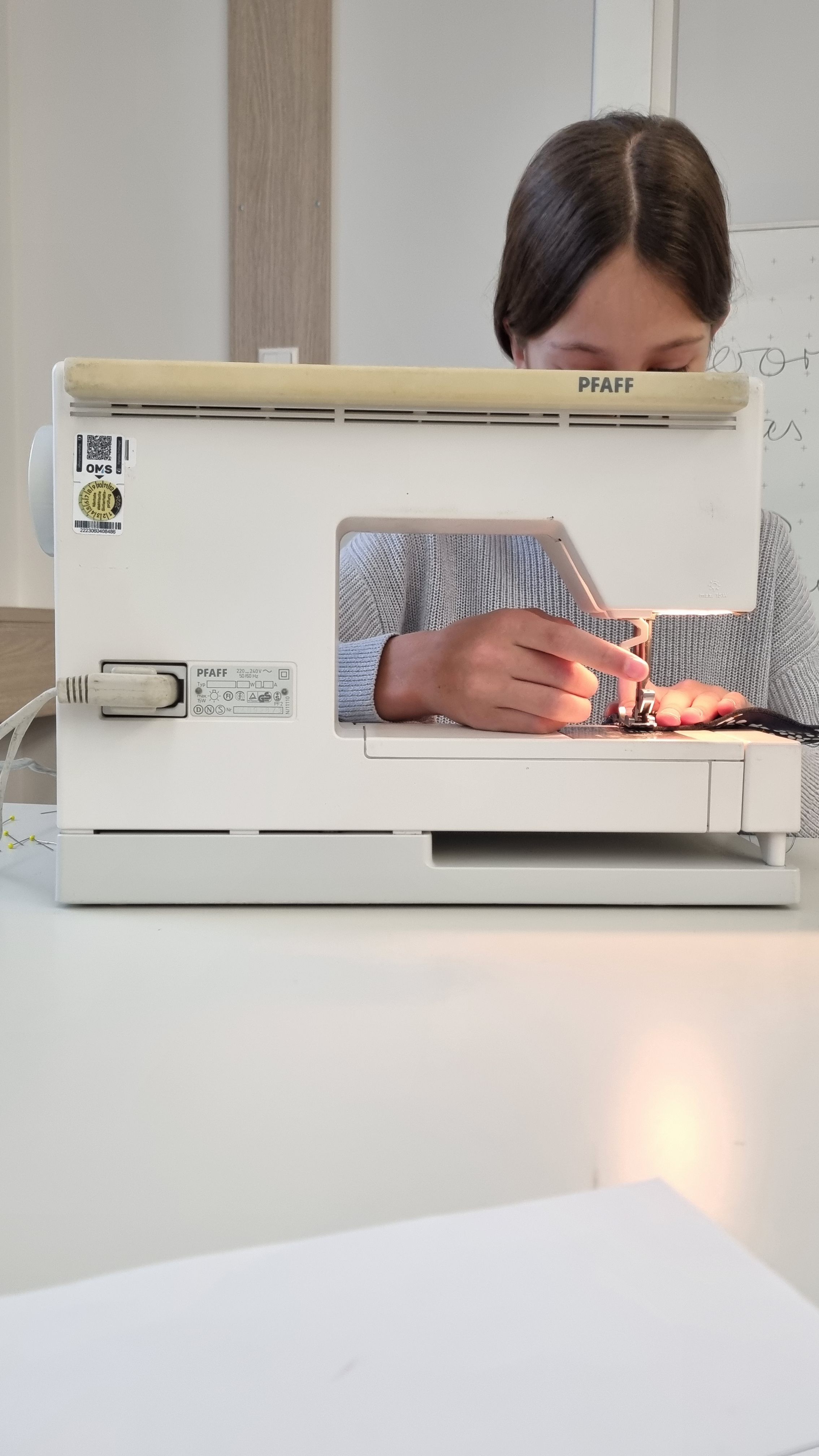 Beim zweiten Upcycling Näh-Workshop am Mittwoch, 03.12.2025, fanden sich wieder einige kreative Schülerinnen ein, um gemeinsam mit Petra Schuster-Klante und Bianca Voß kleine Täschchen zu nähen. Diese wurden überwiegend aus alten Jeanshosen oder Musterstoffen eines Möbelhauses genäht. Die so entstandenen Werke werden nun beim Weihnachtsbasar am Donnerstag, 18.12.2025, gegen einen kleinen Geldbetrag verkauft. Der Erlös kommt wie immer einem guten Zweck zu Gute.