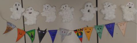 Gemeinsam mit den neuen Fünftklässlerinnen und Fünftklässlern wurden schaurig-schöne Geister für zuhause und eine farbenfrohe Girlande fürs Klassenzimmer gebastelt. Dazu gab es jede Menge Spaß, gute Stimmung – und natürlich einige spooky Verkleidungen, die für perfektes Halloween-Feeling sorgten.