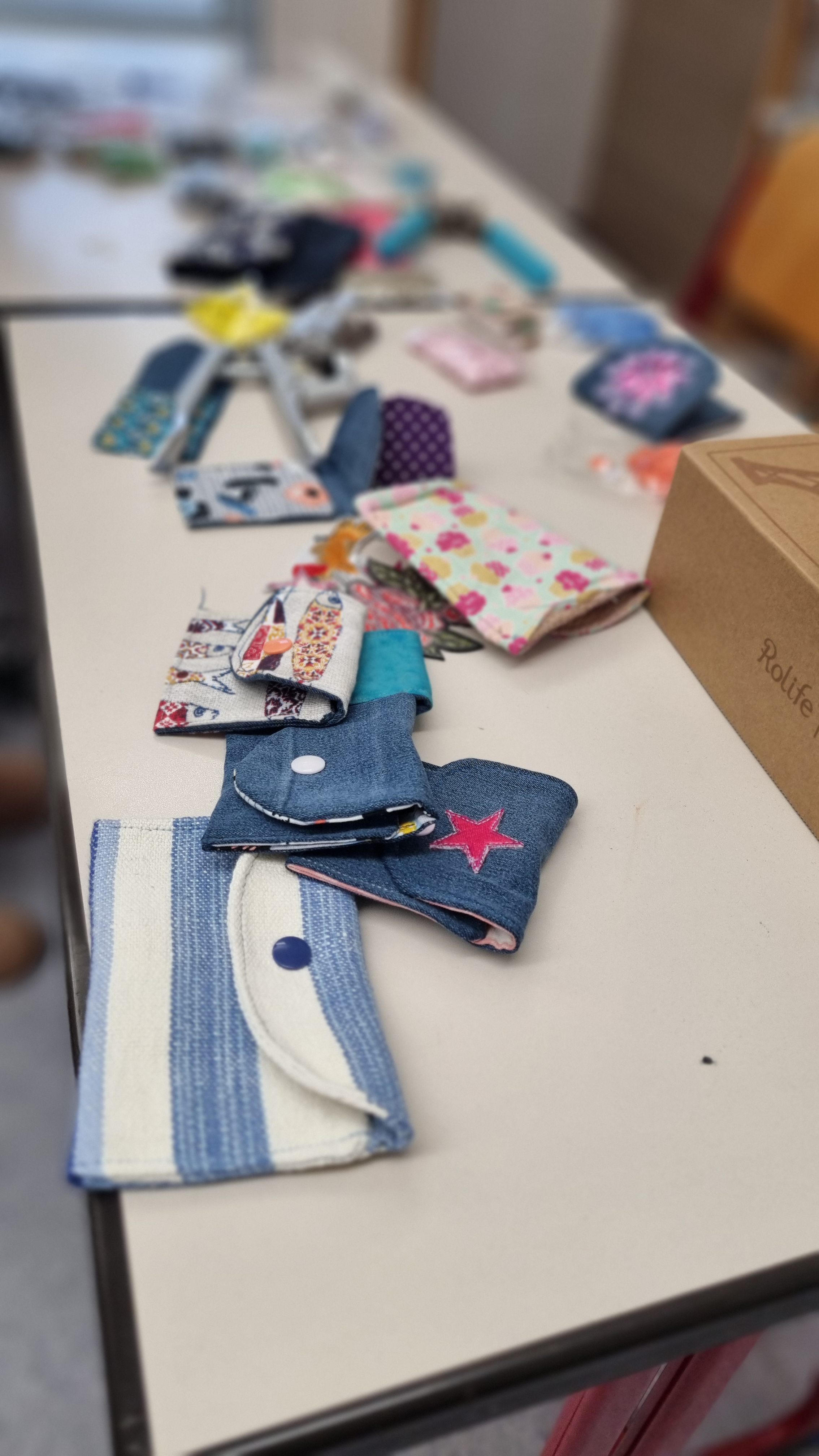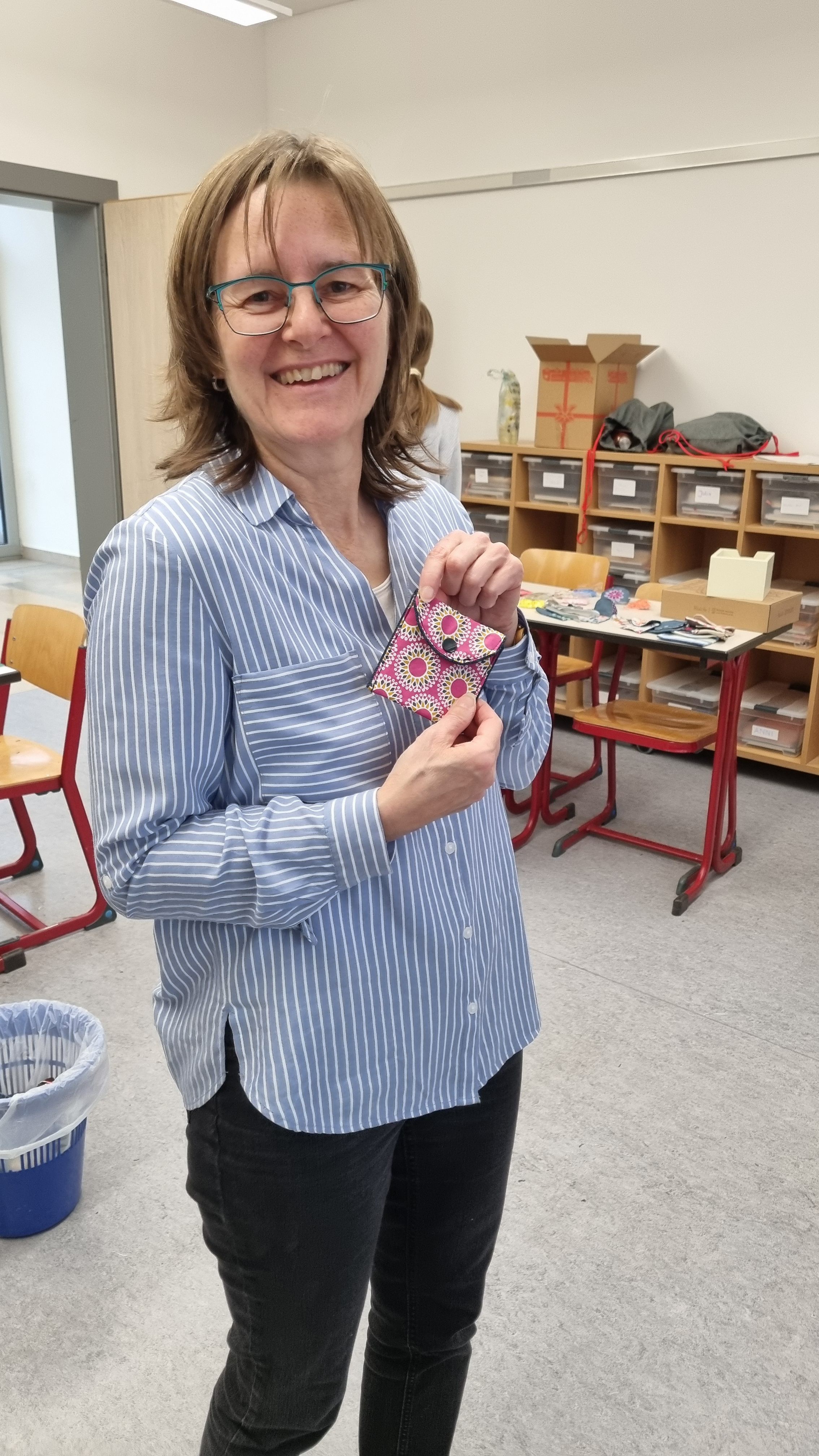 Beim zweiten Upcycling Näh-Workshop am Mittwoch, 03.12.2025, fanden sich wieder einige kreative Schülerinnen ein, um gemeinsam mit Petra Schuster-Klante und Bianca Voß kleine Täschchen zu nähen. Diese wurden überwiegend aus alten Jeanshosen oder Musterstoffen eines Möbelhauses genäht. Die so entstandenen Werke werden nun beim Weihnachtsbasar am Donnerstag, 18.12.2025, gegen einen kleinen Geldbetrag verkauft. Der Erlös kommt wie immer einem guten Zweck zu Gute.